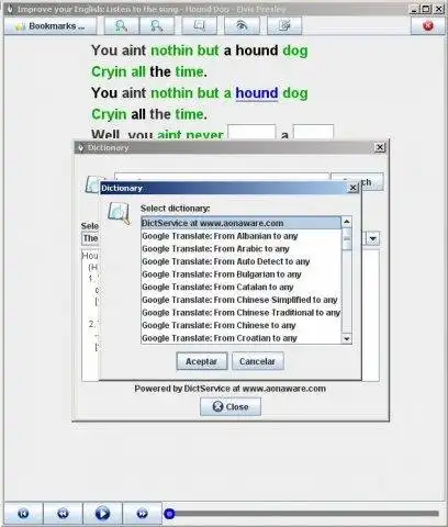 Download and run online this app named Improve your English: Listen to the song with OnWorks for free.