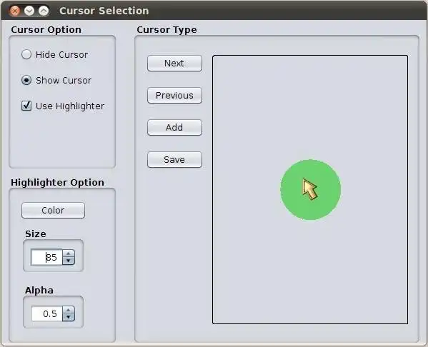 - Chooses from a set of 128 different cursors Cursor highlighter