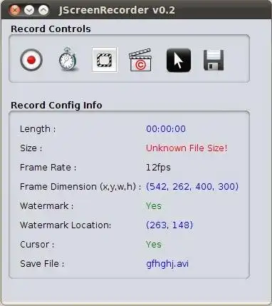 This is an application that can also be fetched from https://sourceforge.net/projects/jscreenrecorder/. It has been hosted in OnWorks in order to be run online in an easiest way from one of our free Operative Systems.
