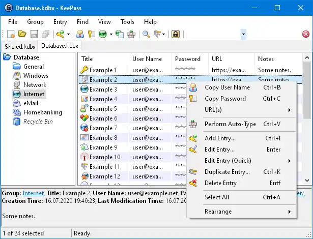 - Various data transfer methods (clipboard, drag and drop, auto-type, plugins can provide integration with other applications, ...).