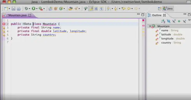 Project Lombok is a java library that automatically plugs into your editor and build tools, spicing up your java. Never write another getter or equals method again, with one annotation your class has a fully featured builder, Automate your logging variables, and much more. Project Lombok is available as a single jar file on the project site. It includes the APIs for development as an installer for IDE integration. On most systems, simply double-clicking the jar file will launch the installer. The installer will attempt to detect the location of a supported IDE. If it cannot correctly determine where the IDE is installed, the location can be specified manually. Simply click "Install/Update," and IDE integration is complete. There are a number of annotations in Project Lombok to allow for more fine grained control over the structure and behavior of a class.