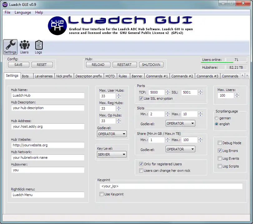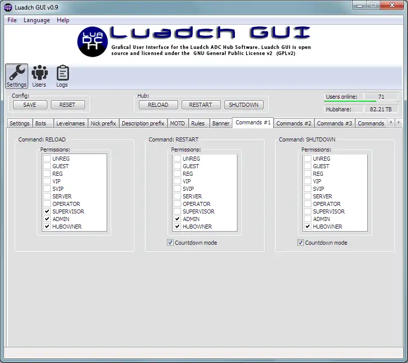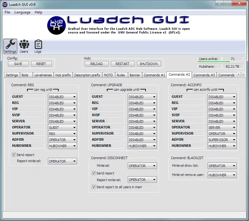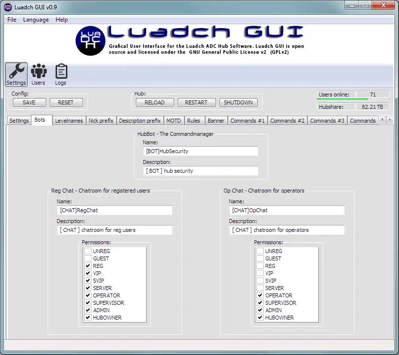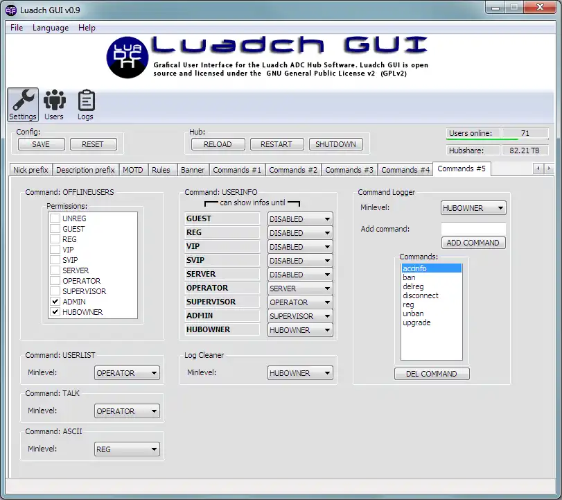 Luadch GUI ist eine grafische Benutzeroberfläche für die Hubsoftware Luadch