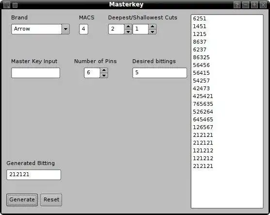 This is an application that can also be fetched from https://sourceforge.net/projects/masterkey/. It has been hosted in OnWorks in order to be run online in an easiest way from one of our free Operative Systems.