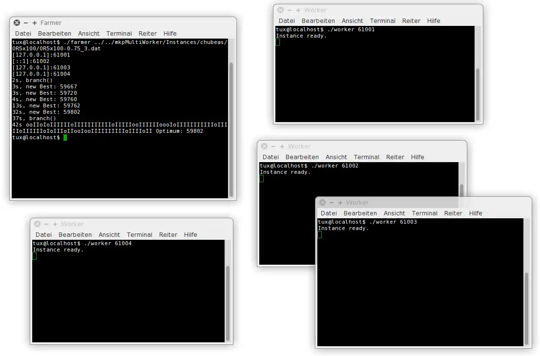 Diese Mini-Code-Version meiner Bachelorarbeit dient mit ca. 370 Code-Zeilen als Beispiel des Farmer-Worker-Modells. Der C++ Code zeigt die Nutzung von Apache Thrift (zur Verteilung) und glpk (zum Lösen).