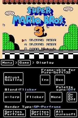 A open-source NES emulator for the Nintendo DS. It can be compiled with GCC(devkitPRO/devkitARM, the version supported) or ADS(the original version, no update).