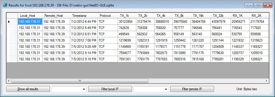 NetIO-GUI is a Windows frontend for the multiplatform commandline utility 'netio'.