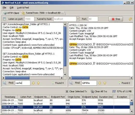 NetTool is a developer tool for monitoring and manipulating application-level network messages, particularly useful for debugging web applications and web services. There are two components to NetTool: the HTTP Client, and the TCP Tunnel.