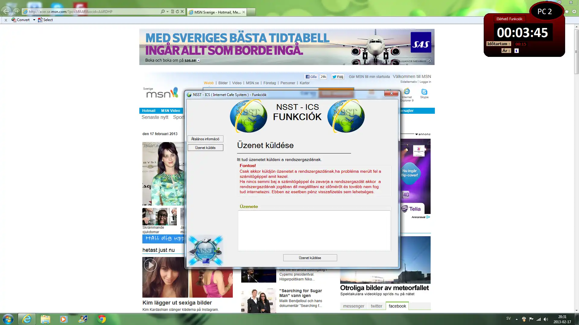 - Üzenetet lehet küldeni a kijelölt számítógépekre szerver felől miközben az internetező ügyfél netezik