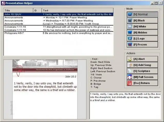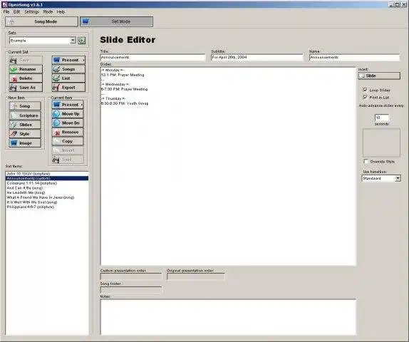 - Present a timed loop of slides, for use in situations such as automatically displaying announcements, verses, Q&As, etc.