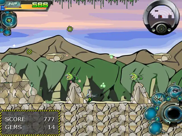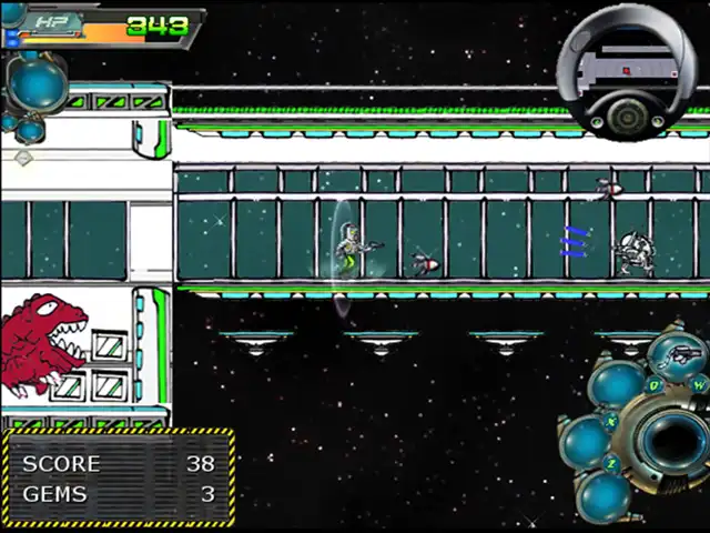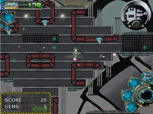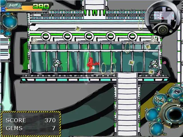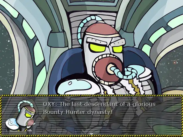 This game is a hybrid between a shot'em up and a platform, he was developer with rpgmaker vx and released with freeware license. The story is composed by nine missions.The player control Oxy, a famous bounty hunter. The current mission of Oxy is to save a rare bird kidnapped by the groulen poacher Borden. Borden is hidden in a groulen Mothership, Oxy must break into the ship and fight an army of robots and soldiers for complete his mission. After the third mission, the story moves into a unknown planet where Oxy must pursue Borden among dangerous creatures.