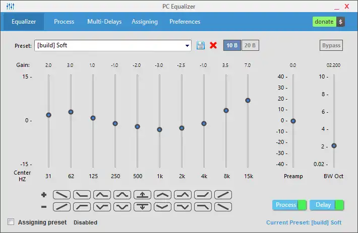PC Equalizer is a Graphical User Interface for "Equalizer APO" which is a parametric / graphic equalizer for Windows.