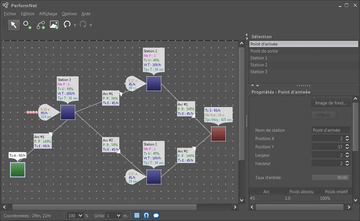 Le projet consistait à développer un logiciel de modélisation de réseau de files d’attente, aussi appelé un réseau de Jackson. Chaque nœud du réspeau représente une station de traitement et chaque arc orienté représente un chemin possible d’une station à une autre. Le réseau possède toujours un point d’arrivée et de sortie. Un tel réseau peut, par exemple, représenter la zone de sécurité d’un aéroport, l’urgence d’un hôpital ou une chaîne de montage.