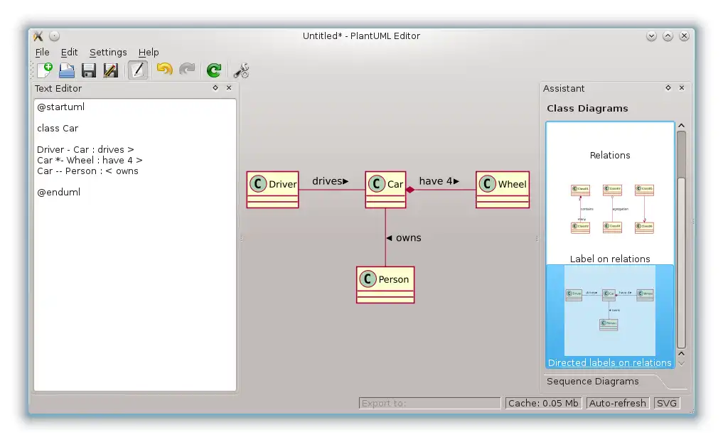 A simple editor for PlantUML. Requires PlantUML (and its dependencies, java and graphviz/dot).