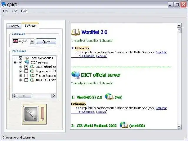 QDICT Dictionary is a client software used to access local and distant dictionaries (from DICT format or with the DICT protocol).