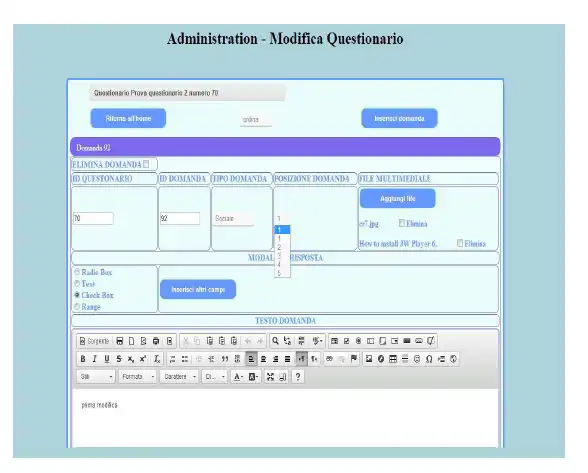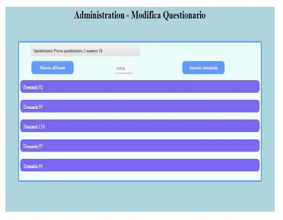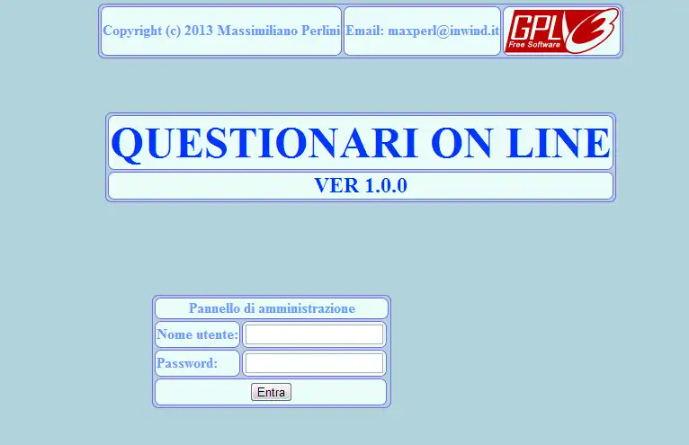 This is the Windows app named QUESTIONARIONLINE whose latest release can be downloaded as Piattaforma_questionario.zip. It can be run online in the free hosting provider OnWorks for workstations.