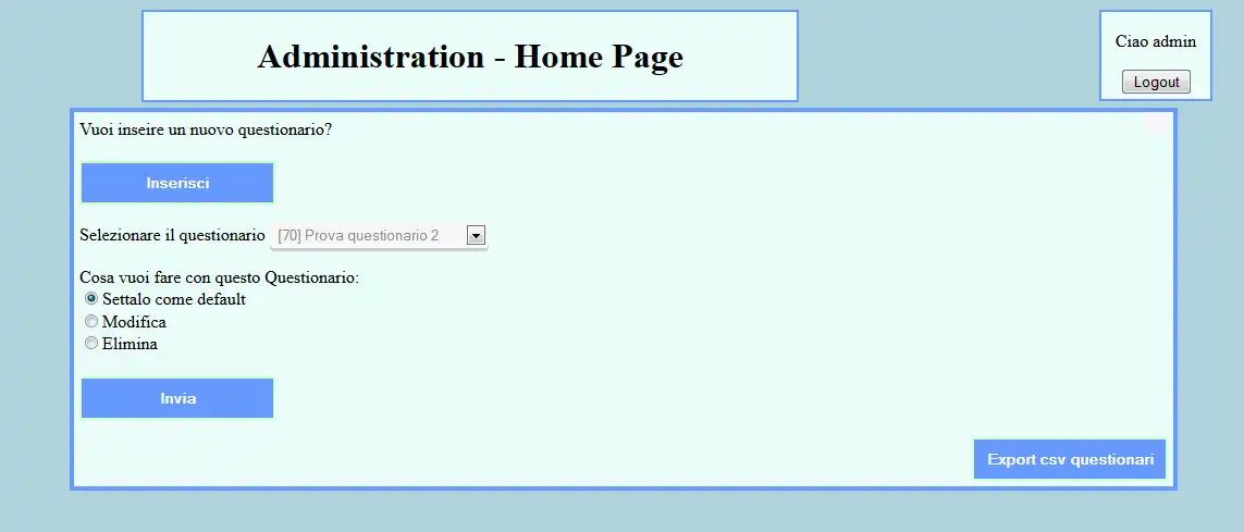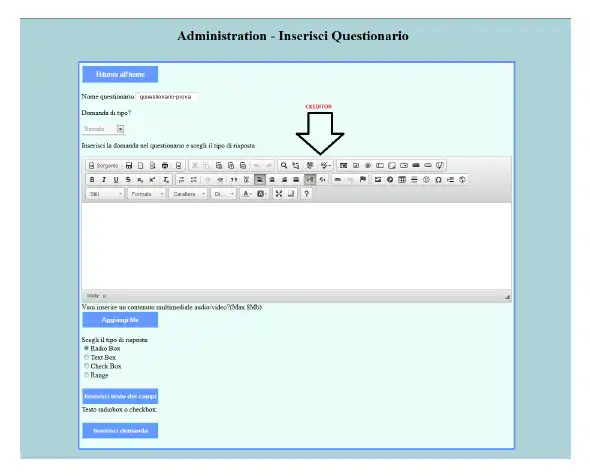 QUESTIONARIONLINE is a software developed in the programming language PHP 5 with the aid of MYSQL that implements a web platform suitable to administer tests and questionnaires online.