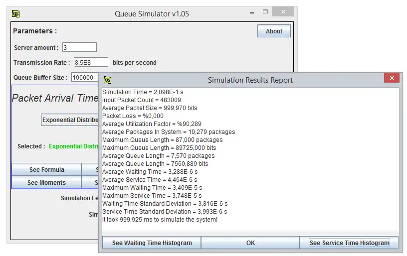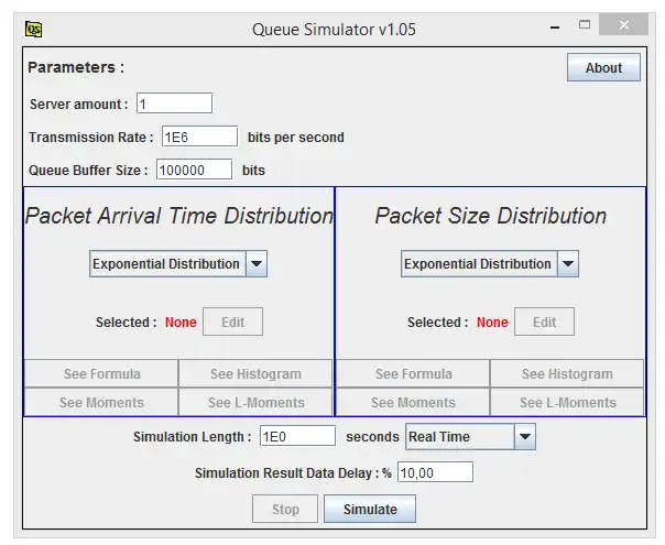 This is an application that can also be fetched from https://sourceforge.net/projects/queuesimulator/. It has been hosted in OnWorks in order to be run online in an easiest way from one of our free Operative Systems.