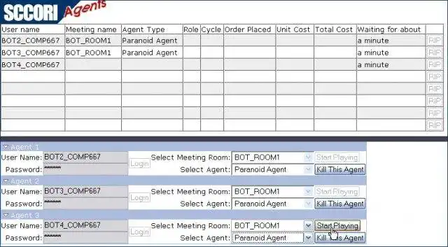 Web-controlled intelligent agents which interact with the Supply Chain Collaboration On-line Research Institute (http://www.sccori.com/sim/) supply chain simulation.