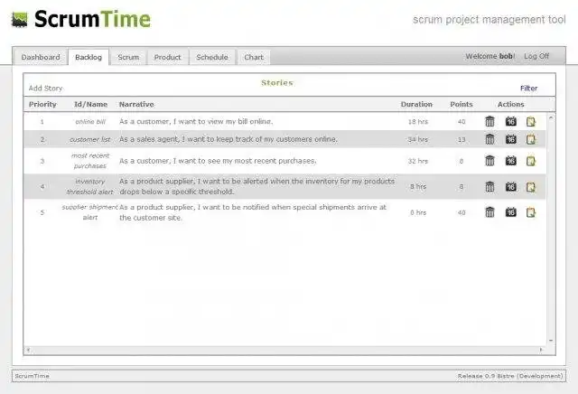 Scrum Time is a web-based Scrum project management tool. This tool is intended to be intuitive, flexible, and extensible. The most recent release is implemented in ASP.NET MVC 2.