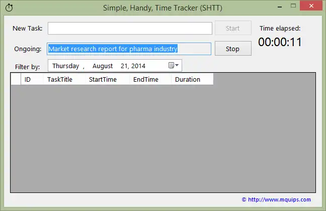 This is the Windows app named Simple, Handy, Time Tracker whose latest release can be downloaded as shtt_v2.0.zip. It can be run online in the free hosting provider OnWorks for workstations.
