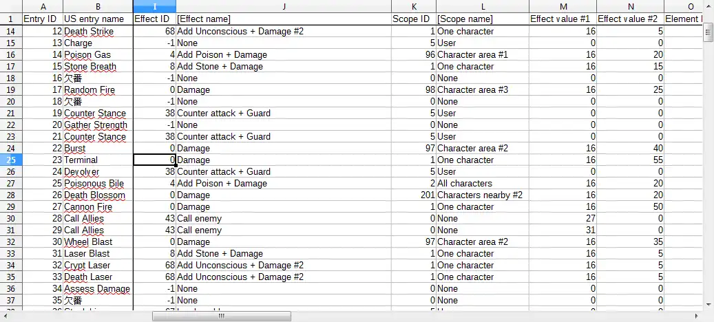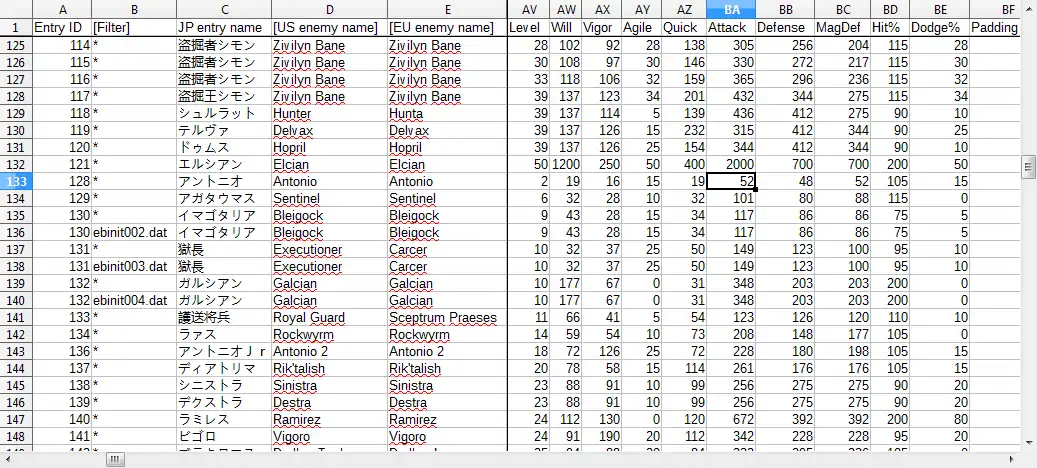 - Enemy stats (action patterns, encounters, events and parameters)
