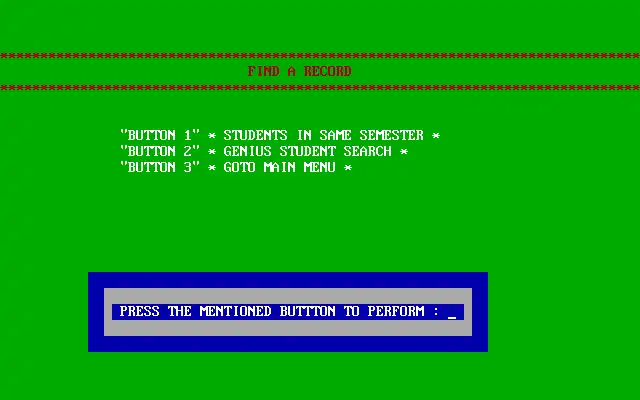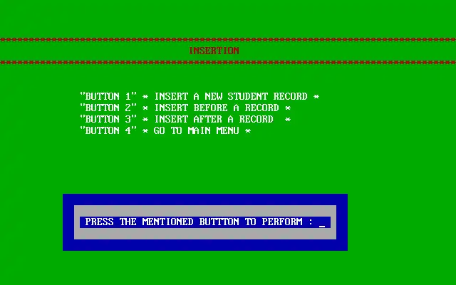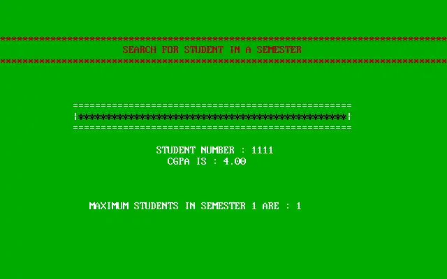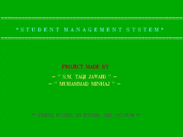 Student Management System is my first semester ITC (Introduction to Computer science) course project written in PASCAL language for my class fellows Syed Taqi Zaidi and Muhammad Minhaj. It uses linked-list data-structure to store student records. Also it uses BGI graphics in order to display colorful user-interface.