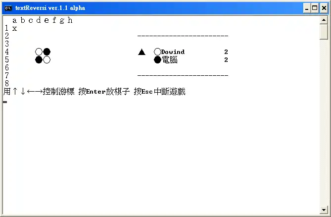 textReversi是一個以鍵盤操控的黑白棋遊戲,提供玩家對電腦、玩家對玩家、以及跨電腦連線對戰的功能,並還有自訂棋盤、更改介面顏色等附加功能,是一款功能強大的黑白棋遊戲