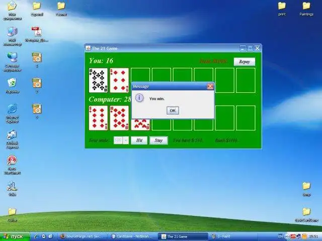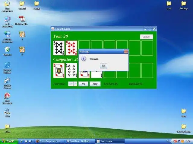 The 21 Game (Java Card Game Engine) to run in Windows online over Linux online