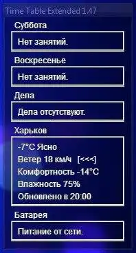 Программа для отображения расписания студентов ХНУРЭ. Также включает в себя мини-планировщик дел, информацию о текущей погоде, информацию о батарее ноутбука и RSS ридер.