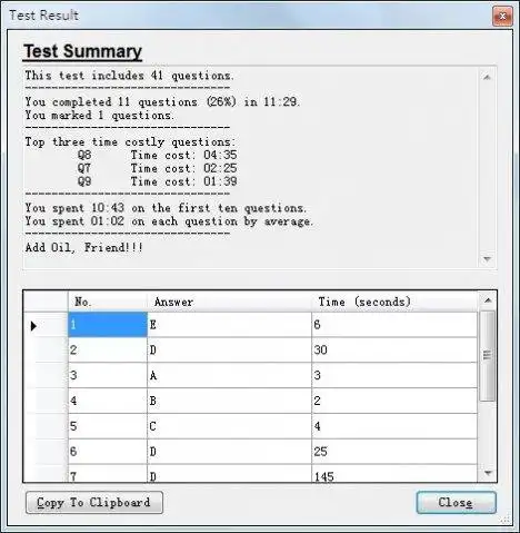 - Time spent on answering each question.