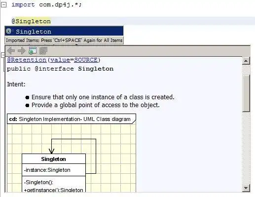 - Access Design Patterns documentations as JavaDoc of @PatternName (eg. @TemplateMethod)