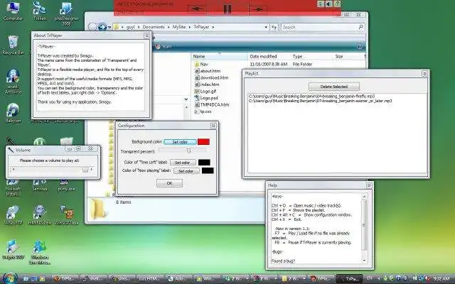 TrPlayer is an OpenSource player written in Delphi 2007 (can also function on delphi 7 or any newer version) which allows to configure almost everything (including the transparent percent, font colors, etc). It is a very easy player, designed very basic.Audience