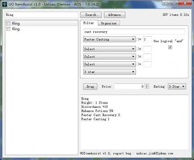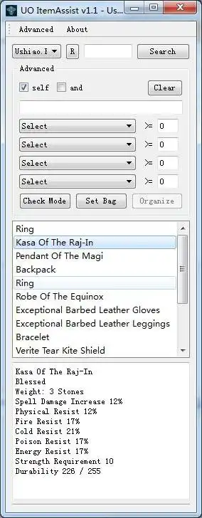 UOItemAssist is a simple assist tool for managing Ultima Online items, developped by Python and QT.UO items have different forms and all items lay in a huddle in the backpack, this isn't like others games, it's too difficult to manage them.
