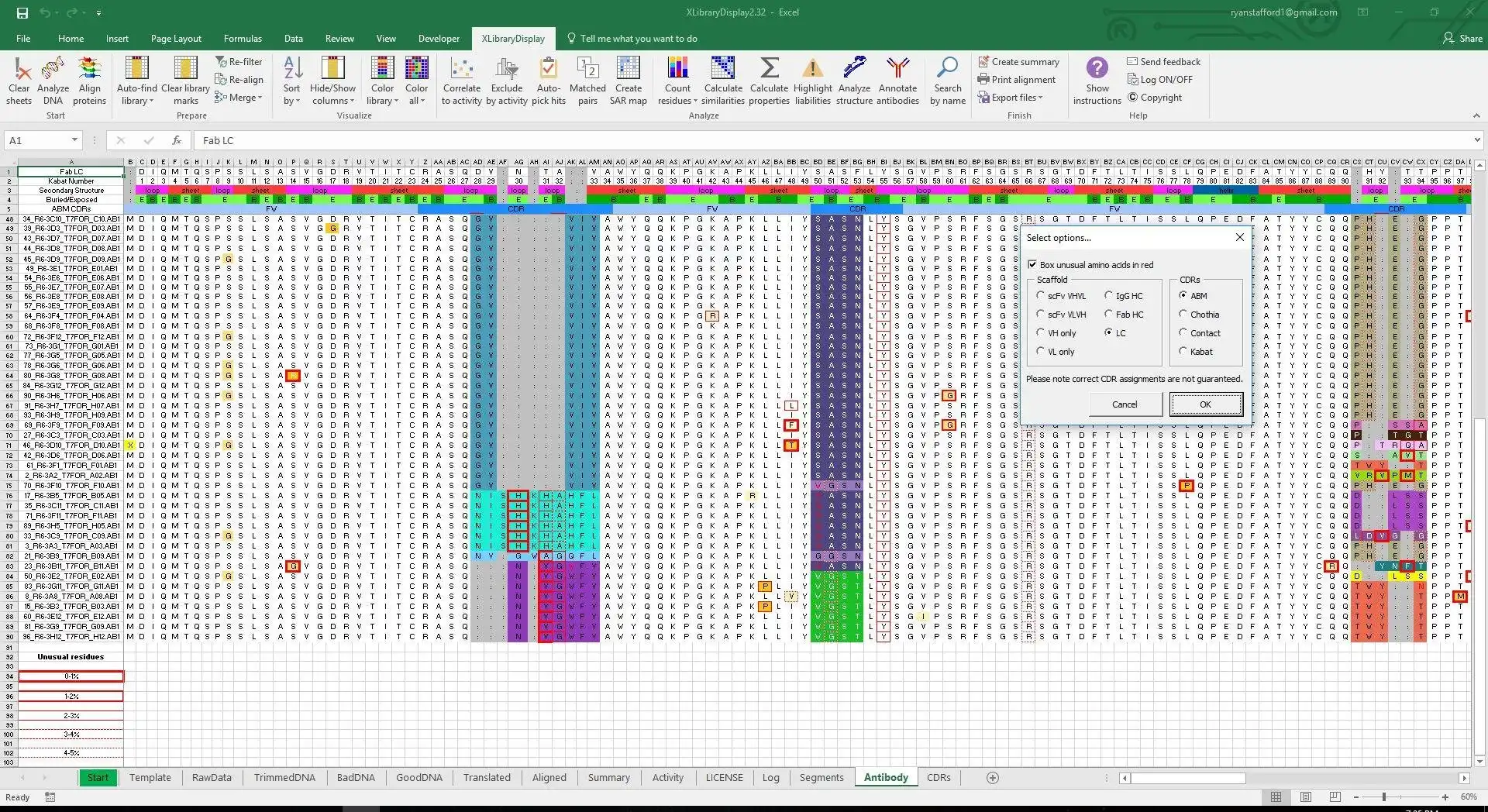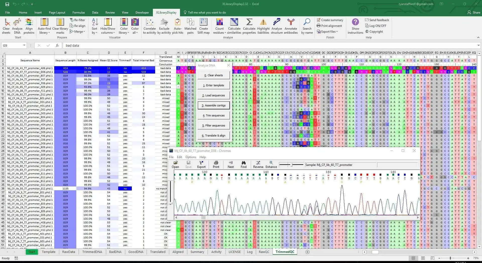 XLibraryDisplay is an intuitive sequence analysis program optimized for protein engineering. It is ideal for all directed evolution platforms including phage, ribosome, and yeast display. Analysis can be quickly done on hundreds to thousands of sequences. Best suited for Sanger sequencing.